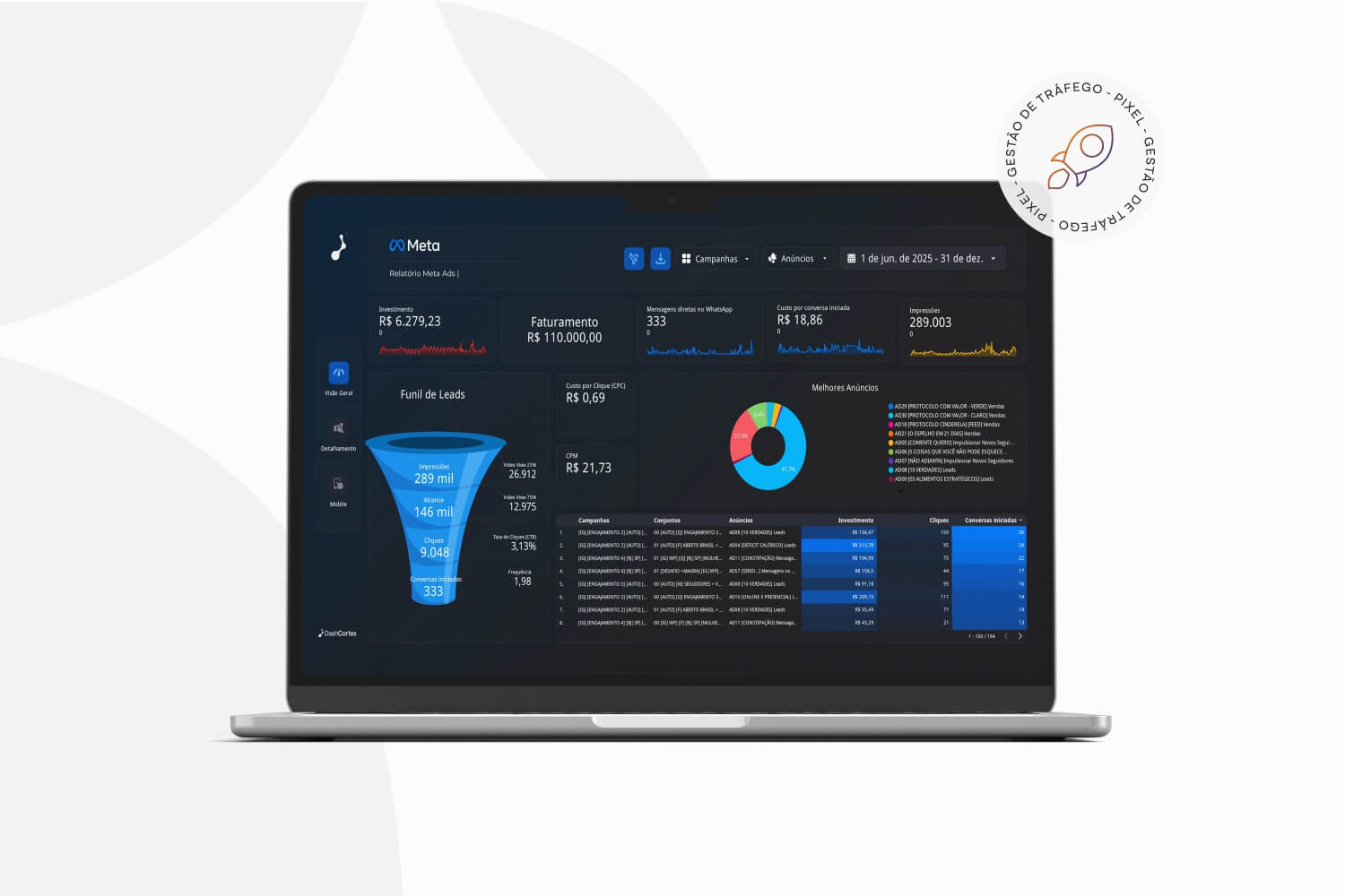 Não. Os anúncios são apenas uma parte do processo. Também atuamos no posicionamento, direcionamento de conteúdo, leitura de dados e organização do caminho que transforma interesse em cliente.