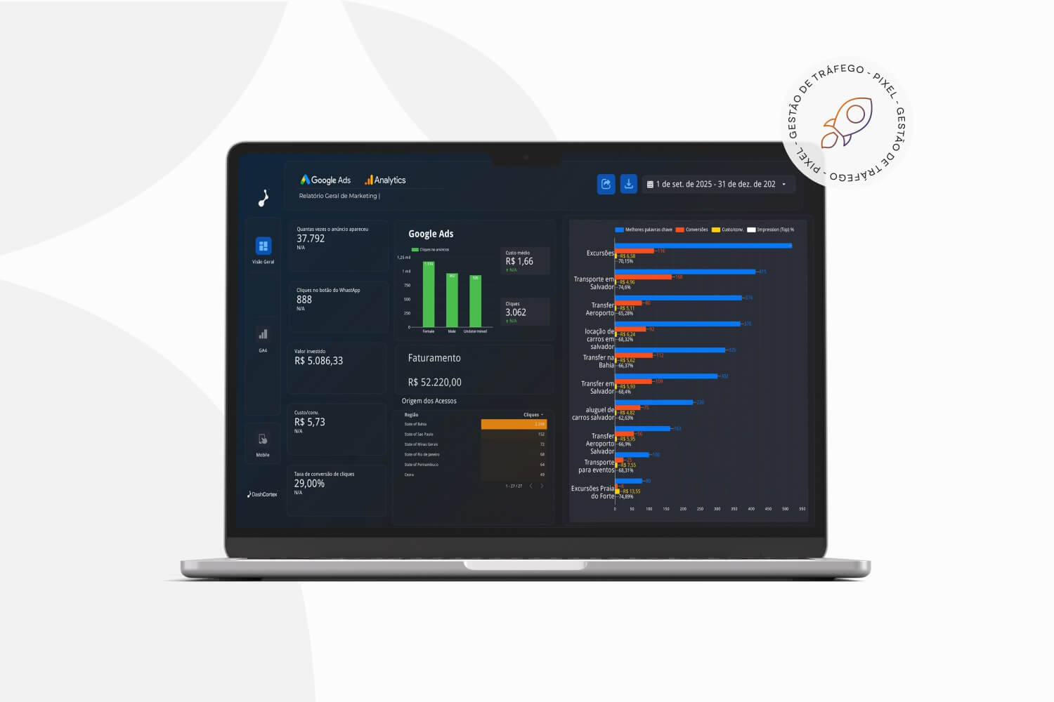 O Programa separa gestores amadores de especialistas e prepara profissionais para atuar em nível profissional, com formação aprofundada em Meta Ads, Google Ads, estratégias avançadas, organização comercial e tomada de decisão baseada em dados, focando em resultados consistentes, escaláveis e de alta performance.